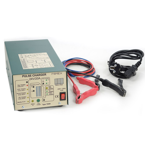 Forex T2420 is one of the most advanced battery charger on the market. Thank to the processor controlled technology it uses special charging characteristics which ensure the fast and safe charging and also the dischargeable capacity and lifespan of the battery is maximized. Practically it is the 24V version of the 12V 32 A (T1232) charger.