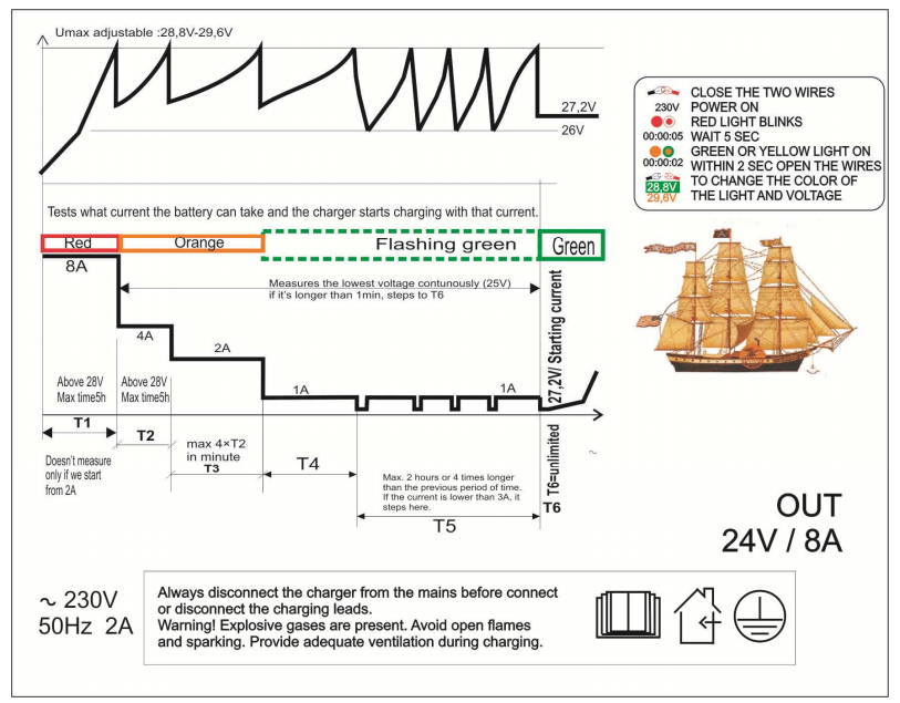 charging characteristics: Step down 8A – 4A – 2A this is a , special , very safe characteristic
